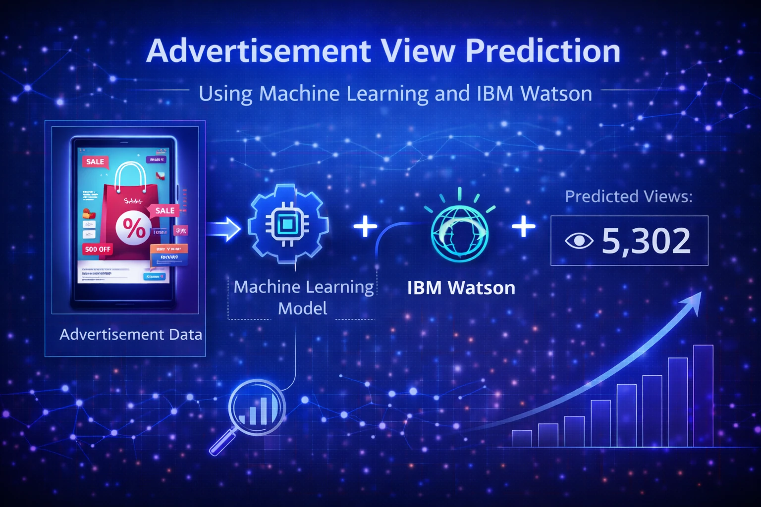 This project focuses on predicting advertisement views using supervised machine learning techniques and IBM Watson services. The system analyzes user behavior and demographic data to determine the probability of a user viewing an advertisement.