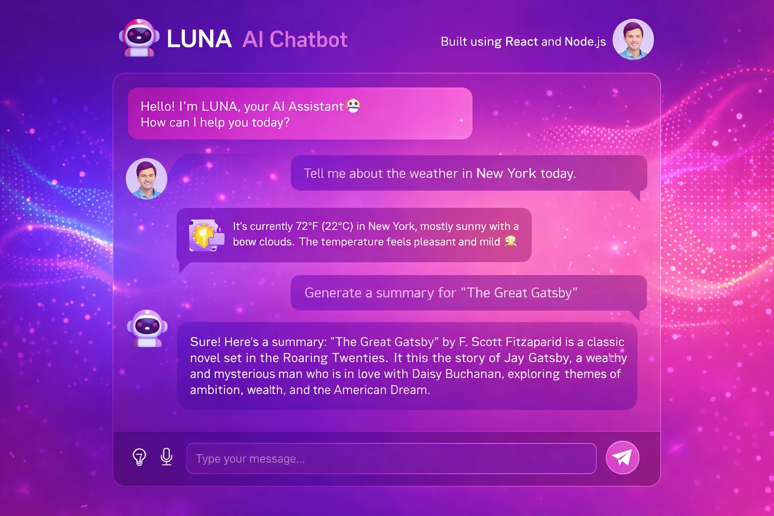 The AI Chatbot Application is a full-stack web application designed to simulate conversational interactions similar to ChatGPT. It is built using React.js for the frontend, Node.js for the backend, and OpenAI API for generating intelligent responses.
