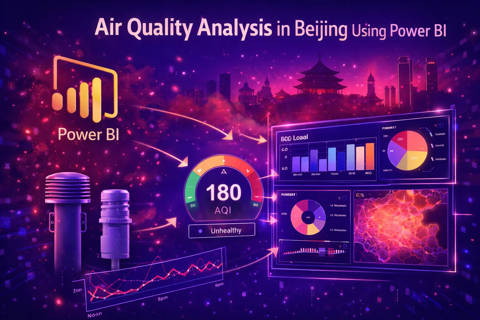 After preprocessing, interactive visualizations are created in Power BI to analyse pollution trends, relationships between different pollutants, and the impact of environmental factors such as temperature and humidity on air quality. This project demonstrates how business intelligence tools like Power BI can be effectively used for environmental data analysis and visualization.