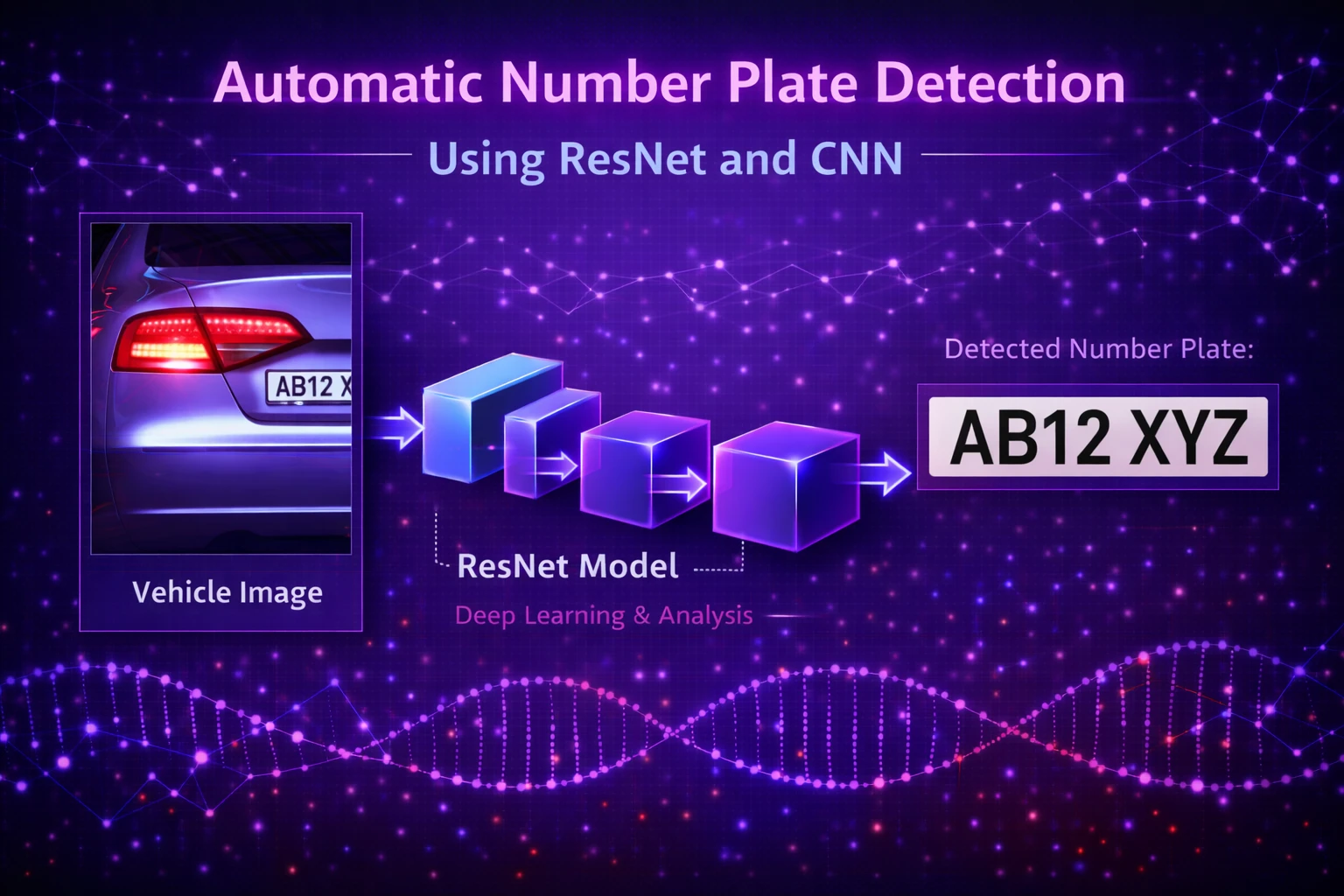 This project focuses on detecting vehicle number plates from images using Convolutional Neural Networks (CNN) and ResNet architecture. CNN is used for automatic extraction of image features, while ResNet improves model performance through residual connections, allowing deeper networks to learn effectively.