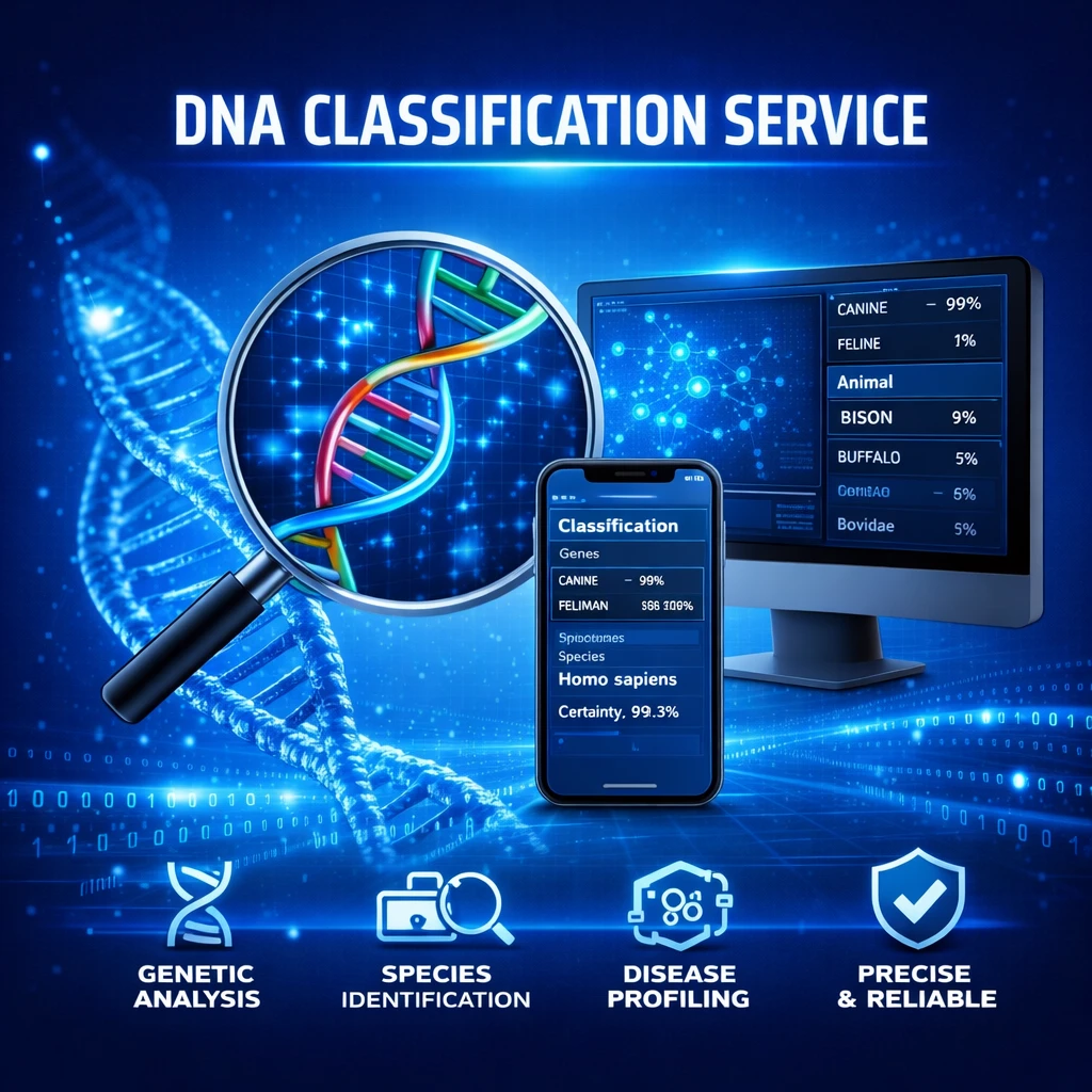 The DNA Classification Service is an AI-driven system that analyzes DNA sequences to classify organisms, identify genetic patterns, and detect mutations. Using machine learning and bioinformatics techniques, the service processes genomic data to provide accurate classification and insights. This technology is valuable in medical research, disease diagnosis, agriculture, and forensic science, enabling faster and more reliable genetic analysis.