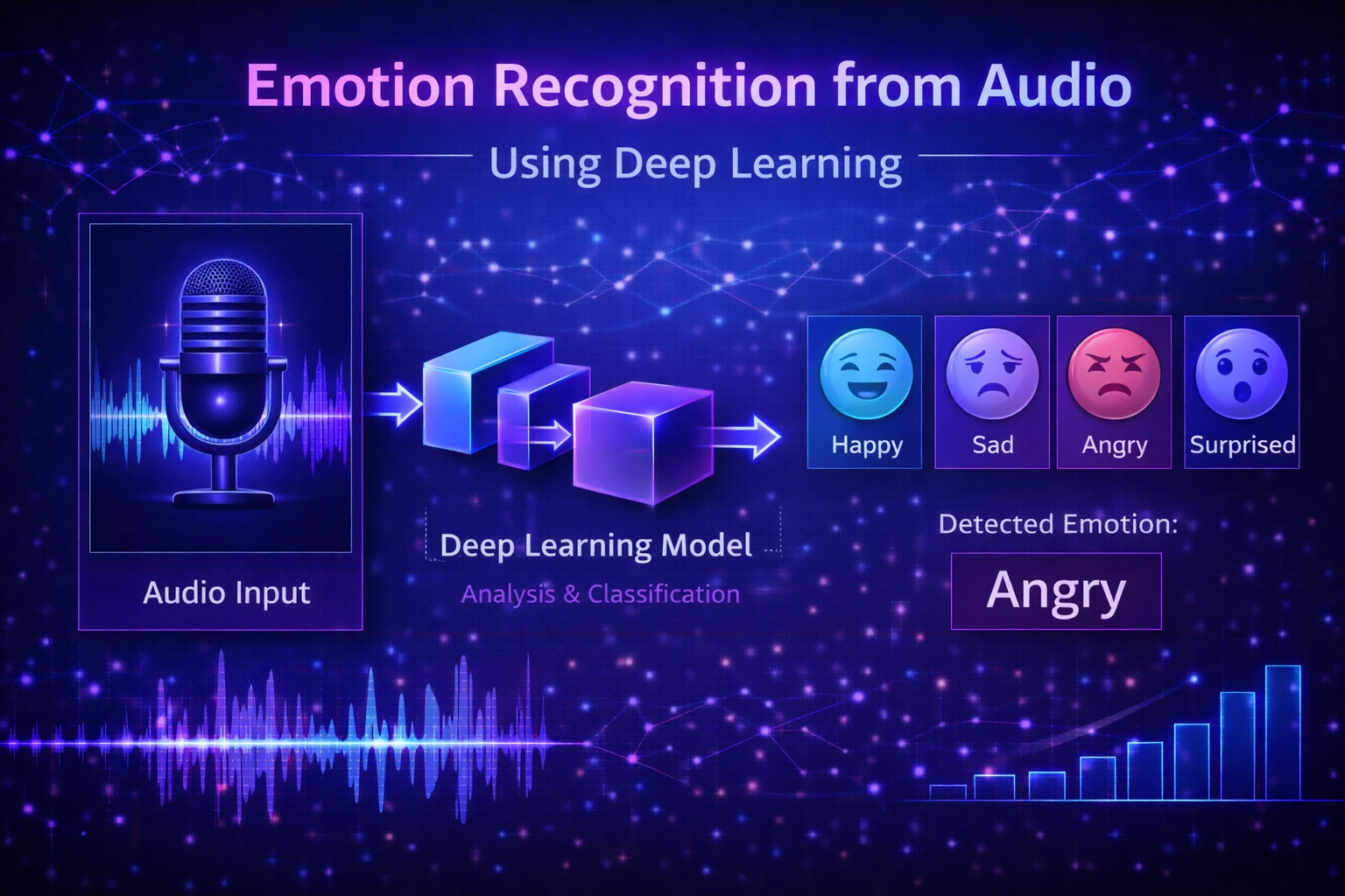 Human emotions play a vital role in communication and interaction. With the advancement of artificial intelligence and machine learning technologies, it has become possible to automatically detect emotions from human speech. Emotion recognition from audio is an important area of research in fields such as human-computer interaction, virtual assistants, healthcare systems, and customer service analysis.