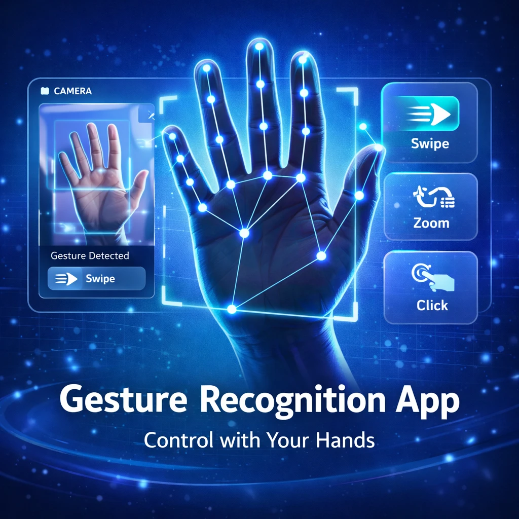 The Hand Gesture Recognition Web Application is an AI-powered web system developed using React.js and TensorFlow.js that detects and classifies hand gestures in real time. The application uses the webcam to capture hand movements and applies machine learning models such as Handpose and Fingerpose to recognize different gestures.