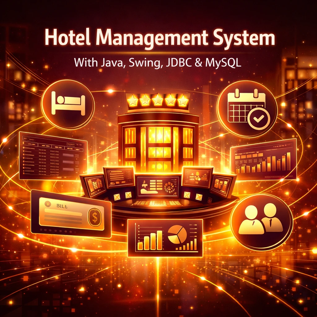 The Hotel Management System is a desktop-based software application developed using Java, Swing, JDBC, and MySQL to automate and manage the daily operations of a hotel efficiently. The main objective of this project is to provide a centralized digital platform for handling hotel activities such as room booking, customer registration, check-in, check-out, billing, and record maintenance.