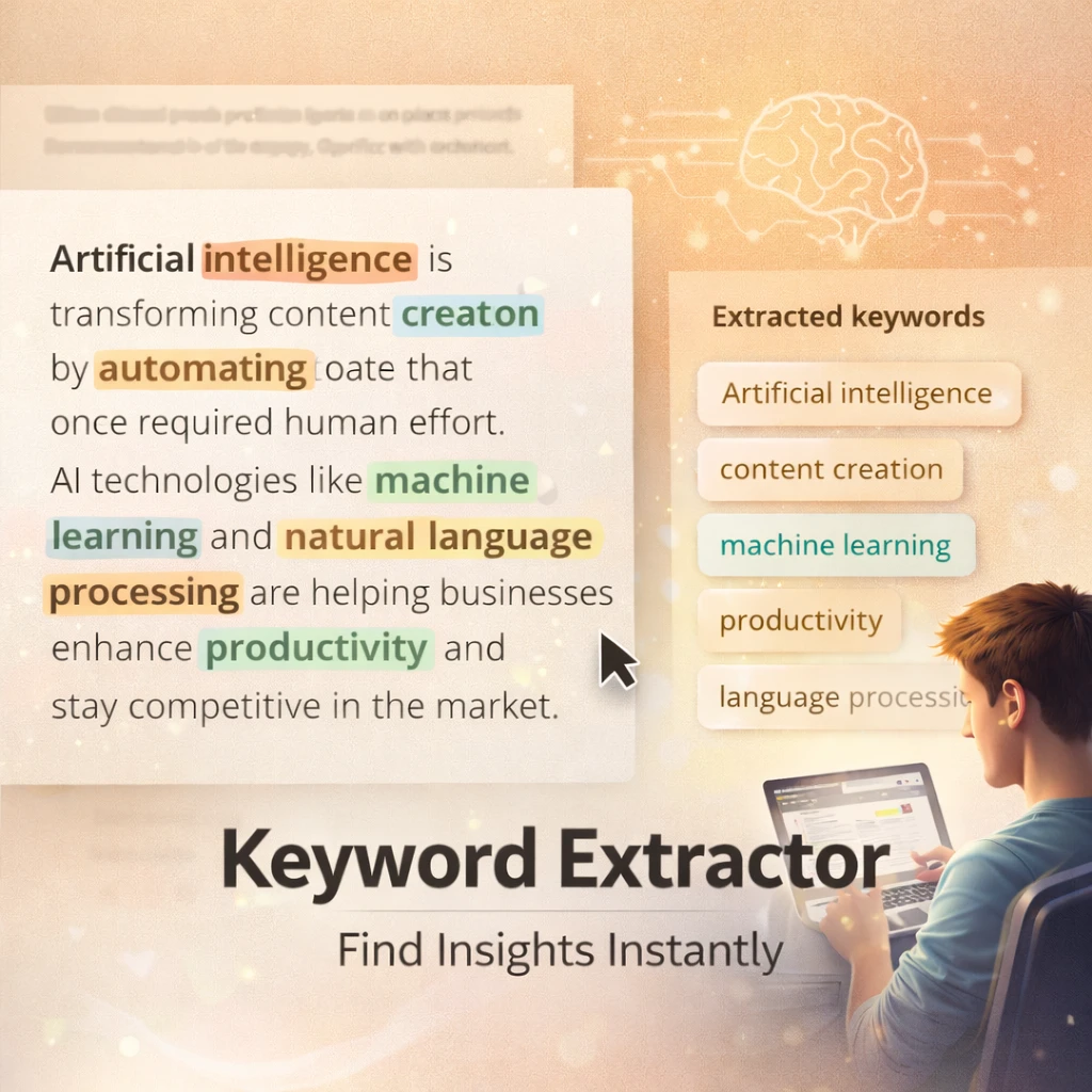 The Keyword Extractor is a full-stack web application developed using React.js for the frontend and Node.js with Express for the backend. The application allows users to input a block of text and automatically extract important keywords using AI.