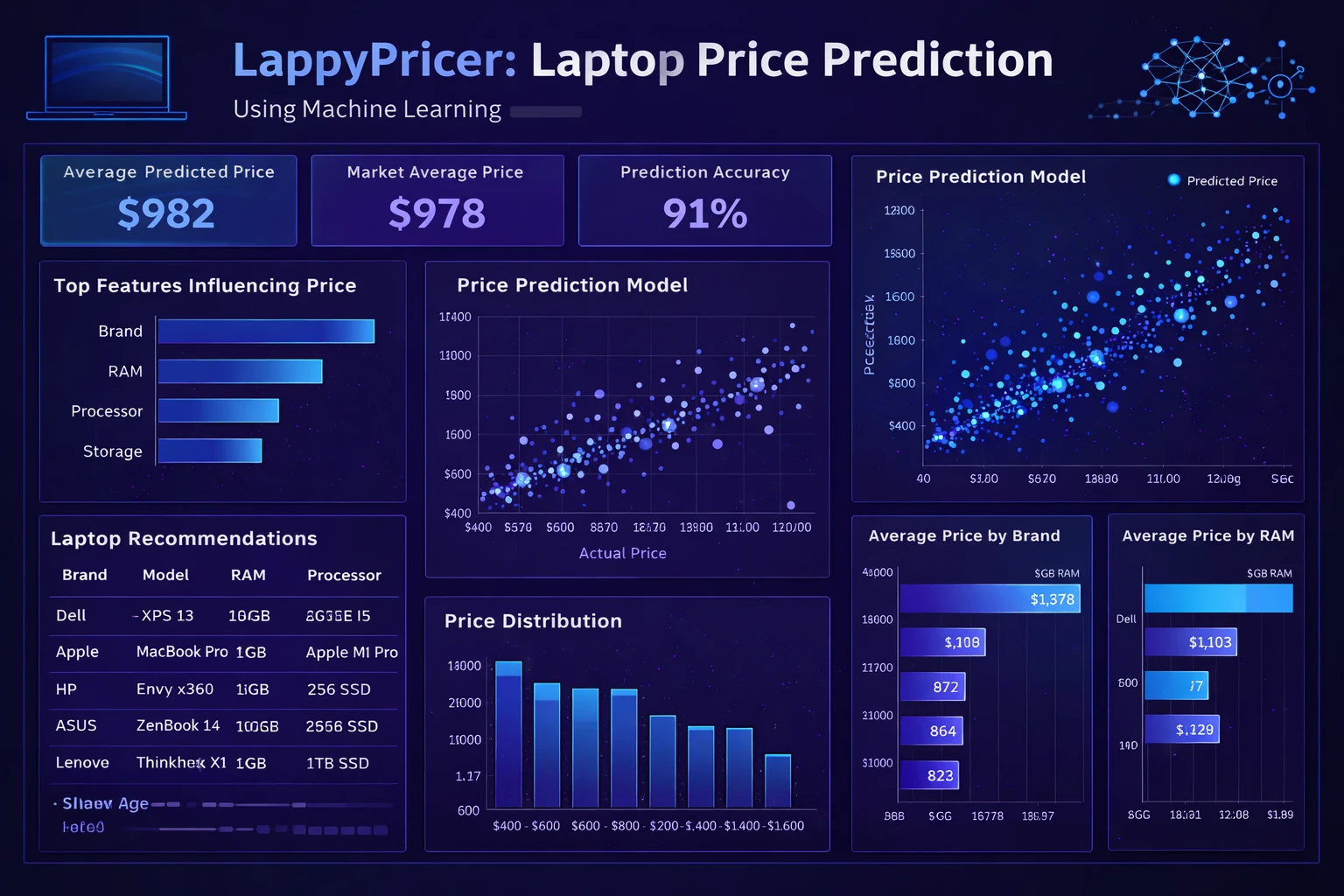 With the rapid growth of technology, laptops have become an essential part of daily life for students, professionals, and businesses. The price of a laptop depends on many factors such as brand, processor, RAM, storage, screen size, graphics card, and operating system. Predicting laptop prices manually is difficult due to these multiple features.