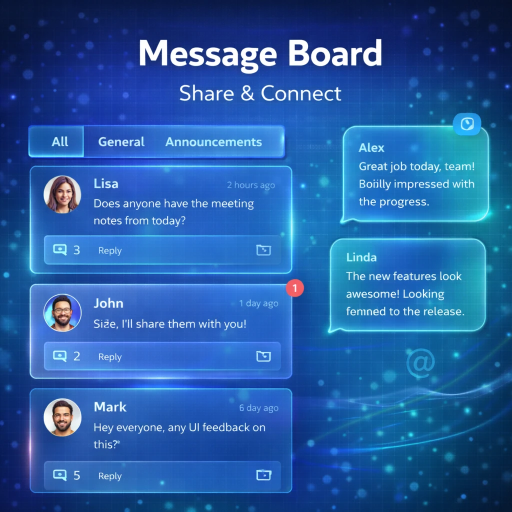 Online communication platforms are essential for sharing ideas and discussions across different topics. The Message Board System is a web-based application developed using React.js and React Router DOM that allows users to navigate between different boards and create messages.