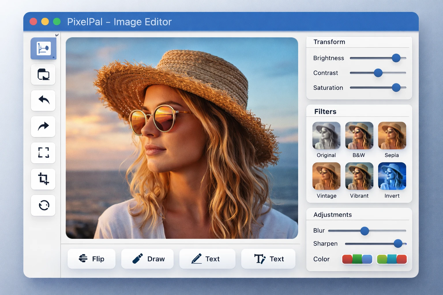 PixelPal provides a simple offline desktop solution with essential editing features and an intuitive Tkinter-based GUI.