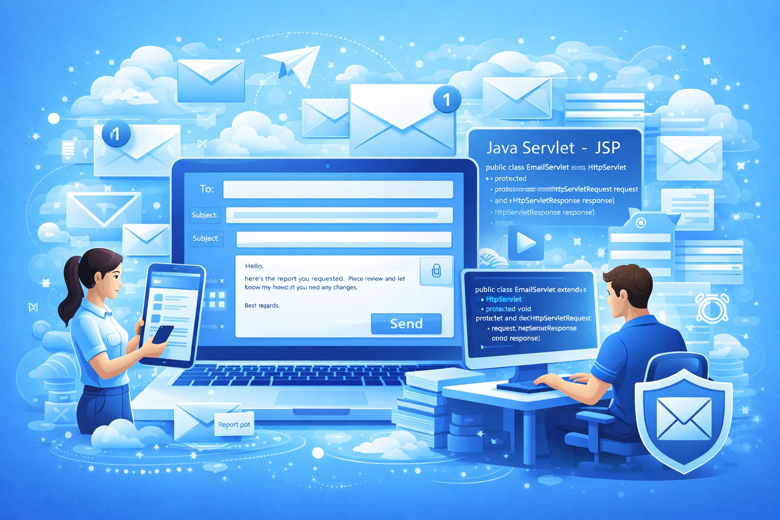 The Email System Web Application is a web-based project developed using Java Servlet and JSP that enables users to send, receive, and manage emails through a browser interface. In modern communication, email is one of the most important tools used for personal, academic, and professional purposes. However, understanding how email systems work internally can be difficult when using ready-made platforms. This project aims to build a simplified email system to demonstrate how such applications function.