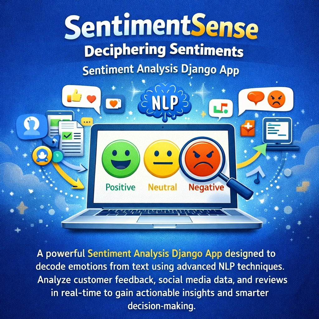 SentimentSense is a Django-based web application that performs sentiment analysis on user-provided text. Using Natural Language Processing (NLP) and machine learning models, the system classifies text into positive, negative, or neutral sentiments. It provides an interactive interface for real-time sentiment prediction and visualization.