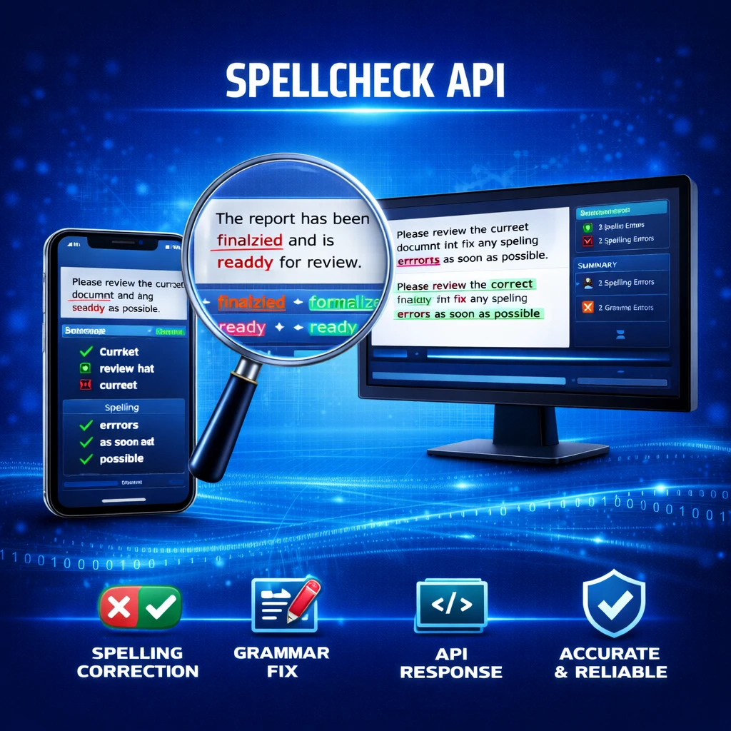 The SpellCheck API is an AI-powered service that detects and corrects spelling errors in text using Natural Language Processing (NLP) and machine learning techniques. By analyzing word patterns, context, and linguistic rules, the system provides accurate spelling suggestions and corrections in real time. This API is useful for text editors, search engines, chat applications, and educational tools to improve writing quality and communication clarity.