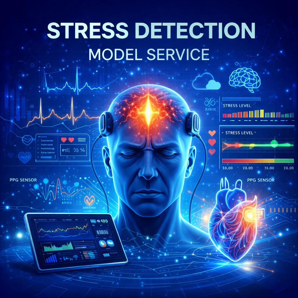 The Stress Detection Model Service is an AI-based system that identifies stress levels using data such as facial expressions, voice patterns, text sentiment, or physiological signals. By applying machine learning algorithms, the system analyzes these inputs to detect signs of stress in real time and classify them into different levels.
