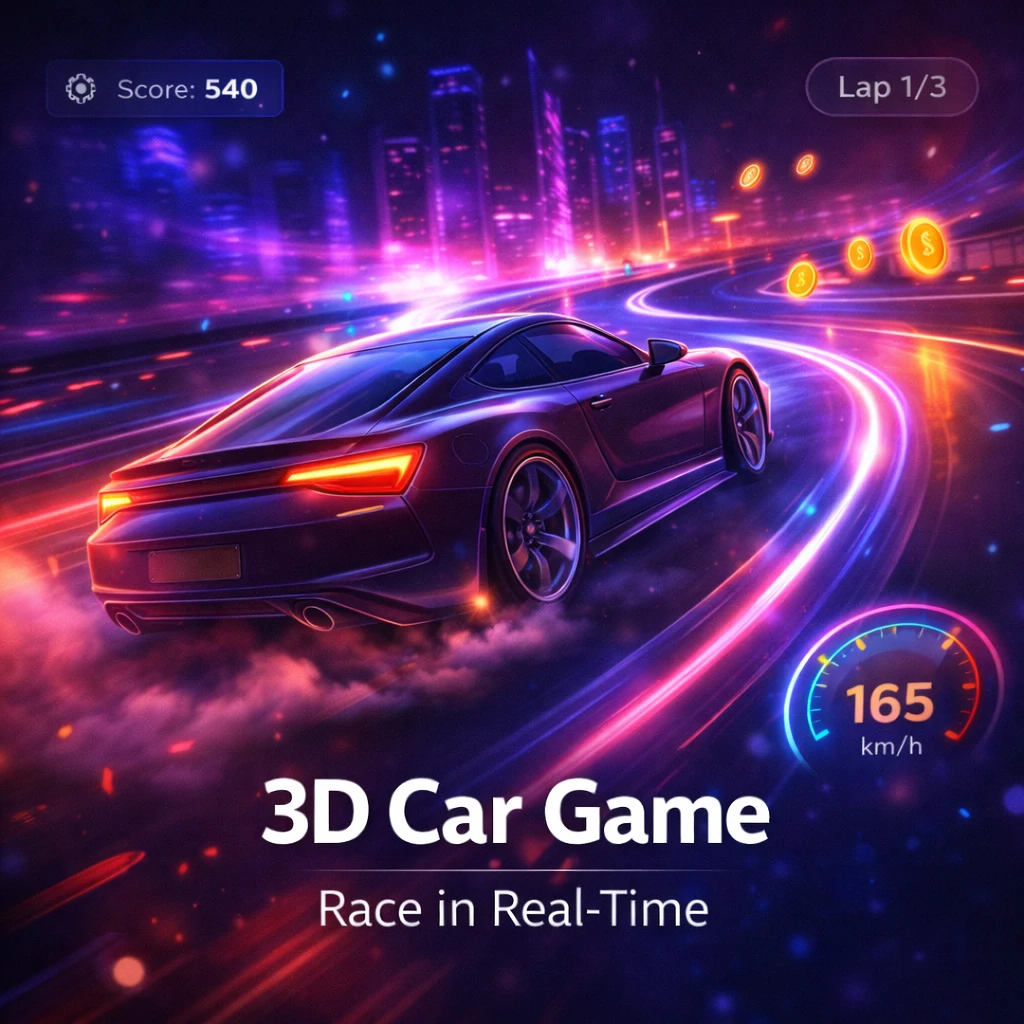 The 3D Car Mini Game is an interactive web-based game developed using React.js, Three.js, and React Three Fiber. The application allows users to control a 3D car in a virtual environment using keyboard controls.