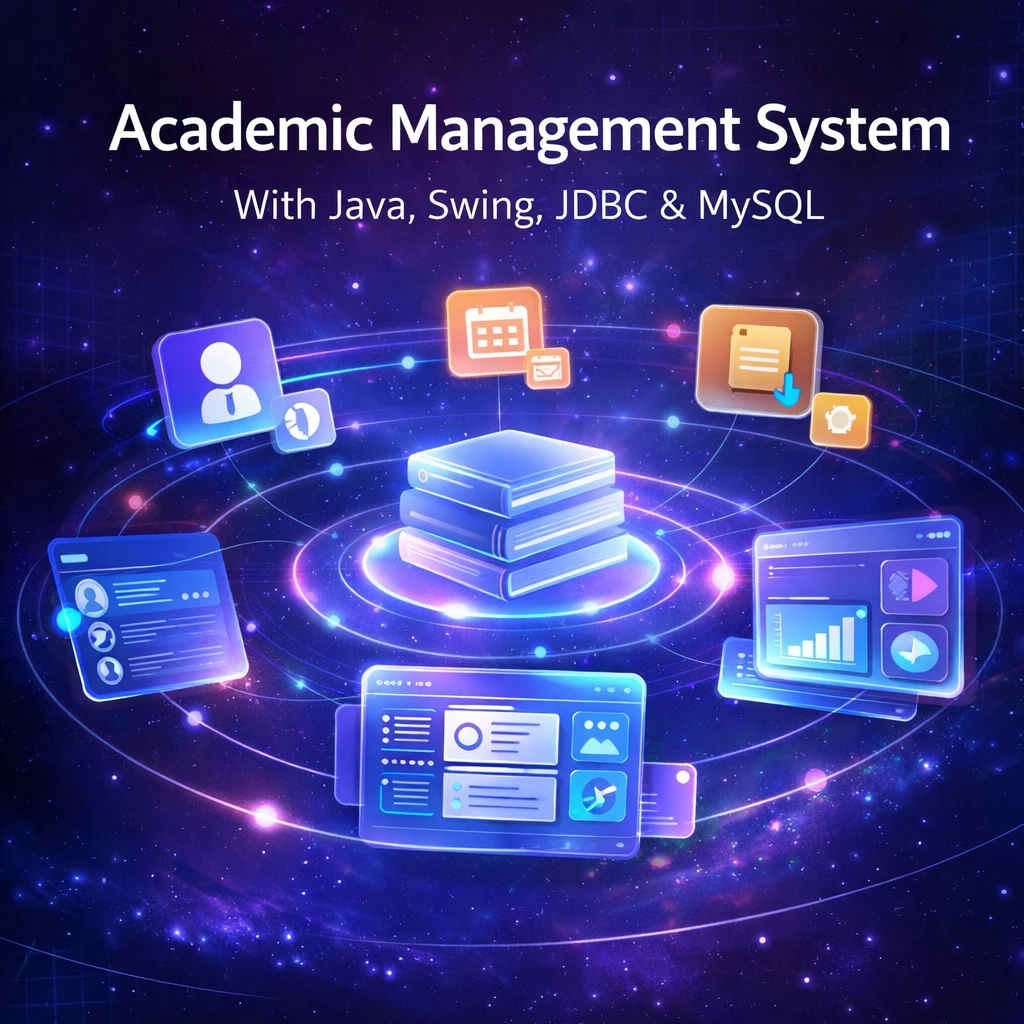 The Academic Management System is a desktop-based software application developed using Java, Swing, JDBC, and MySQL to efficiently manage academic activities within educational institutions such as schools, colleges, and universities. The primary objective of this system is to automate the management of student records, course information, academic performance, and administrative data through a centralized digital platform.