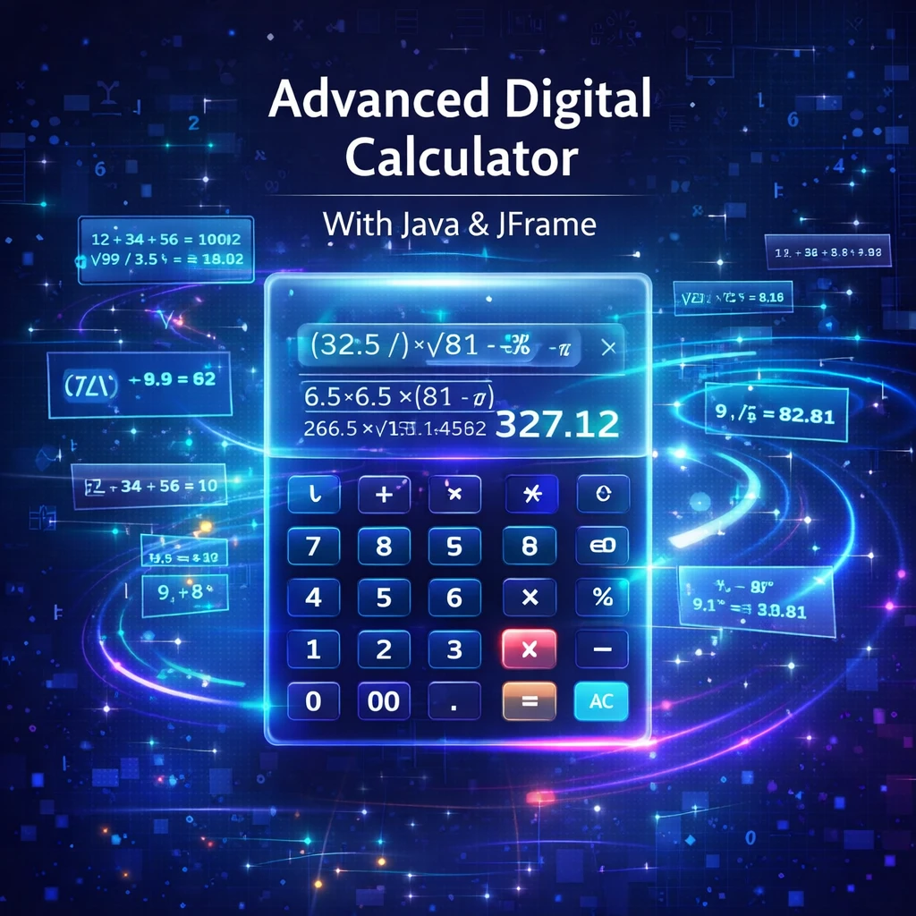 The Advanced Digital Calculator is a desktop-based application developed using Java and JFrame to perform a wide range of mathematical calculations through an interactive graphical user interface. The main aim of this project is to provide users with a simple, efficient, and user-friendly calculator that can handle both basic arithmetic operations and selected advanced mathematical functions. Unlike traditional calculators that may have limited usability in learning environments, this software-based calculator offers a clear digital interface, quick result generation, and ease of access on any system supporting Java.