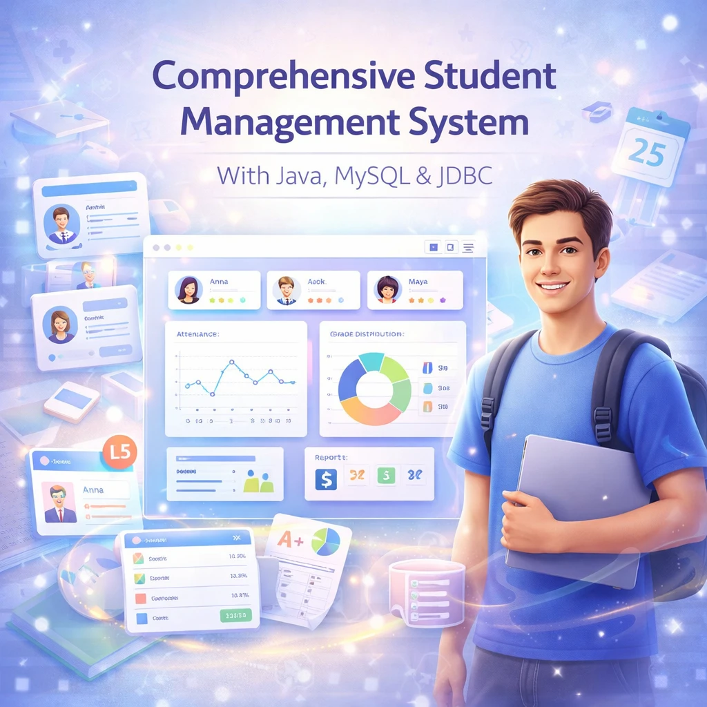 The Comprehensive Student Management System is a desktop-based software application developed using Java, MySQL, and JDBC to efficiently manage and organize student-related information within an educational institution. The main purpose of this system is to simplify the process of storing, retrieving, updating, and managing student data in a structured and secure digital environment.