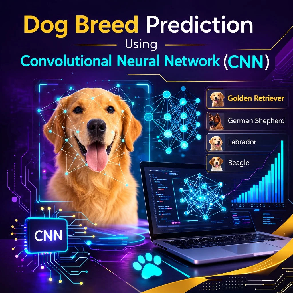 This project focuses on predicting the breed of a dog using deep learning techniques. Image classification problems such as identifying objects, animals, or people in images are commonly solved using Convolutional Neural Networks (CNNs).