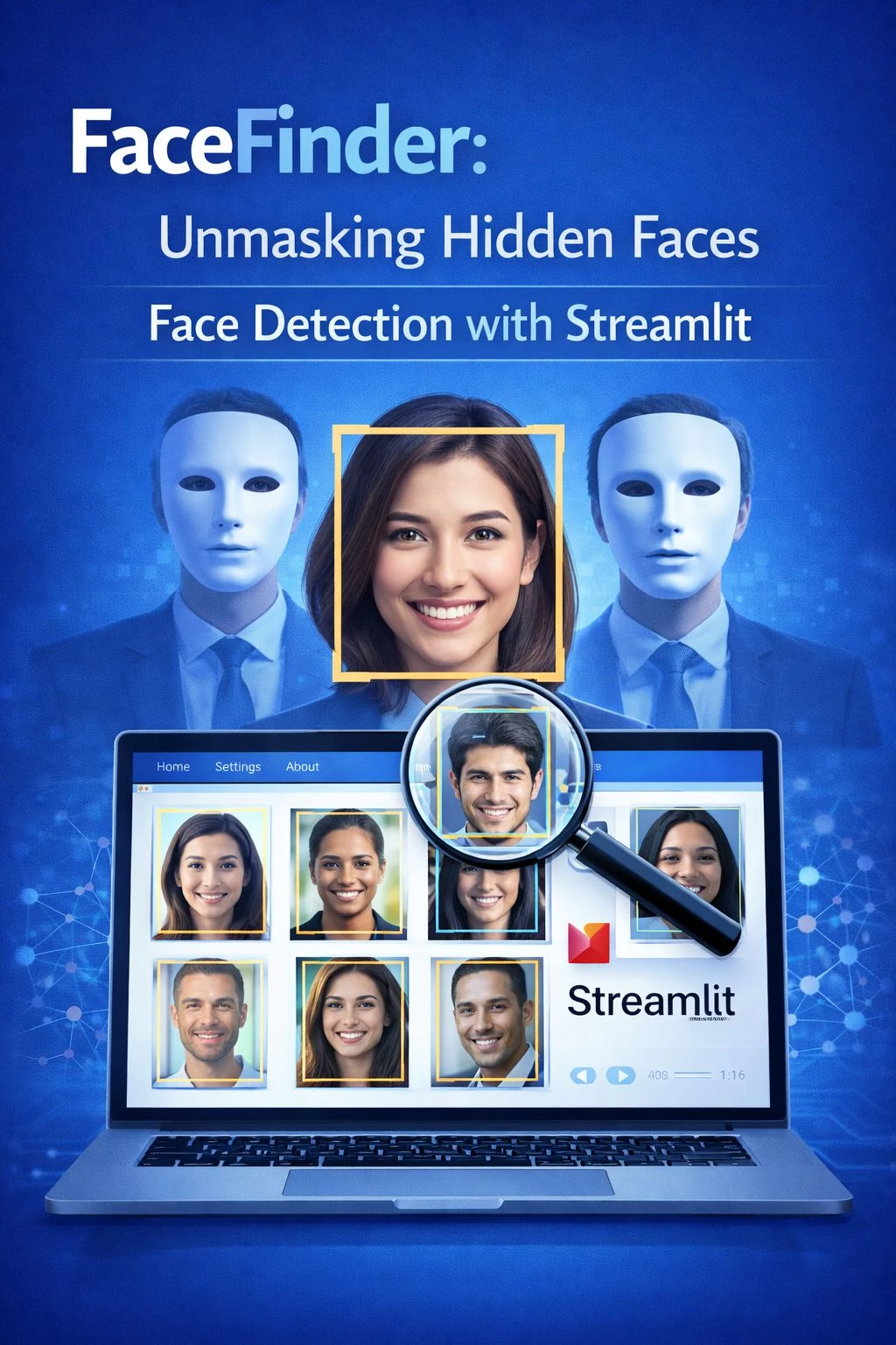 FaceFinder is a computer vision application that detects human faces in images and live video streams using deep learning and OpenCV. Built with Streamlit for an interactive interface, the system enables real-time face detection for security, attendance systems, and surveillance applications.