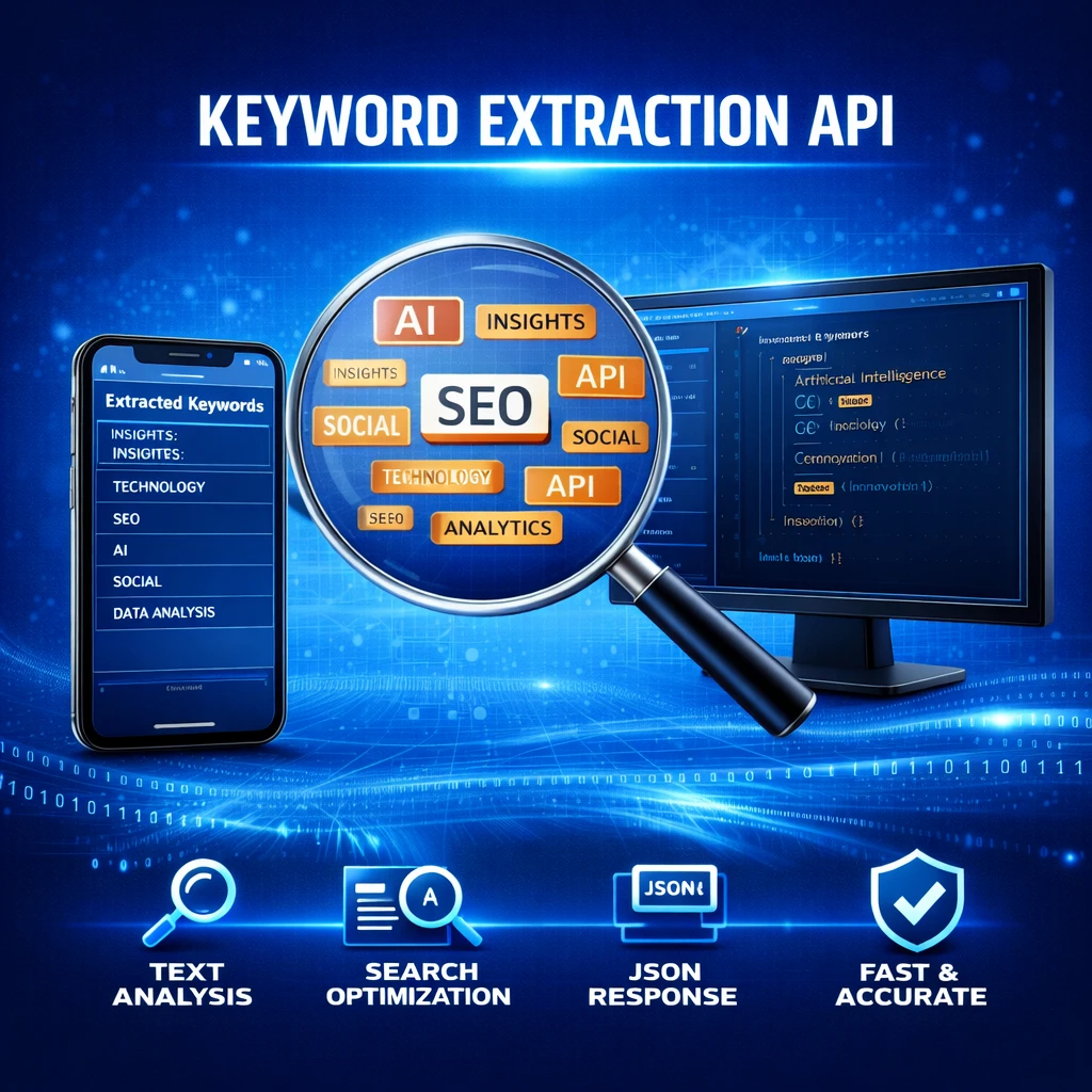 The Keyword Extraction API is an AI-powered service that automatically identifies important words and phrases from text documents using Natural Language Processing (NLP) techniques. By analyzing context, frequency, and semantic relationships, the system extracts meaningful keywords that summarize the core content. This service is useful for search engine optimization (SEO), content categorization, document indexing, and information retrieval.