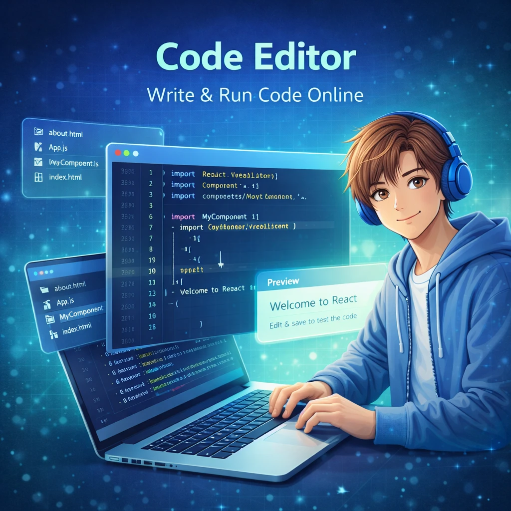 The Online Code Editor is a web-based application developed using React.js that allows users to write, edit, and execute code directly in the browser. The application integrates the Monaco Editor, which powers Visual Studio Code, to provide a rich coding experience with syntax highlighting and language support.