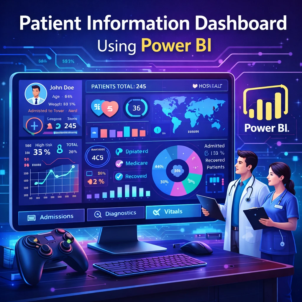 This project focuses on developing a Patient Information Dashboard using Power BI to visualize and manage hospital patient data. The dashboard allows doctors and nurses to quickly access patient information such as admission number, admission date, discharge date, age, test results, and medical notes.