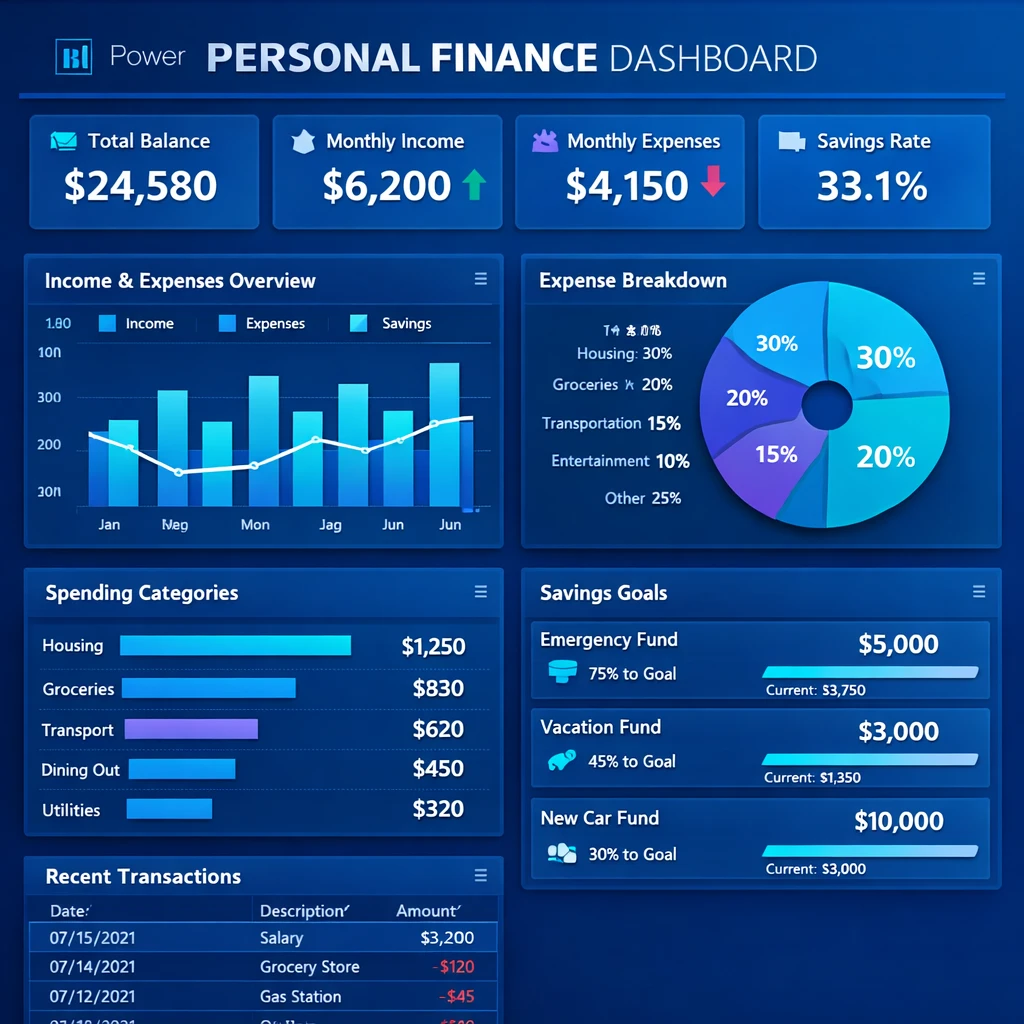 This project demonstrates how business intelligence tools can transform financial data into meaningful insights, helping individuals manage their finances more effectively and plan their expenses more efficiently.
