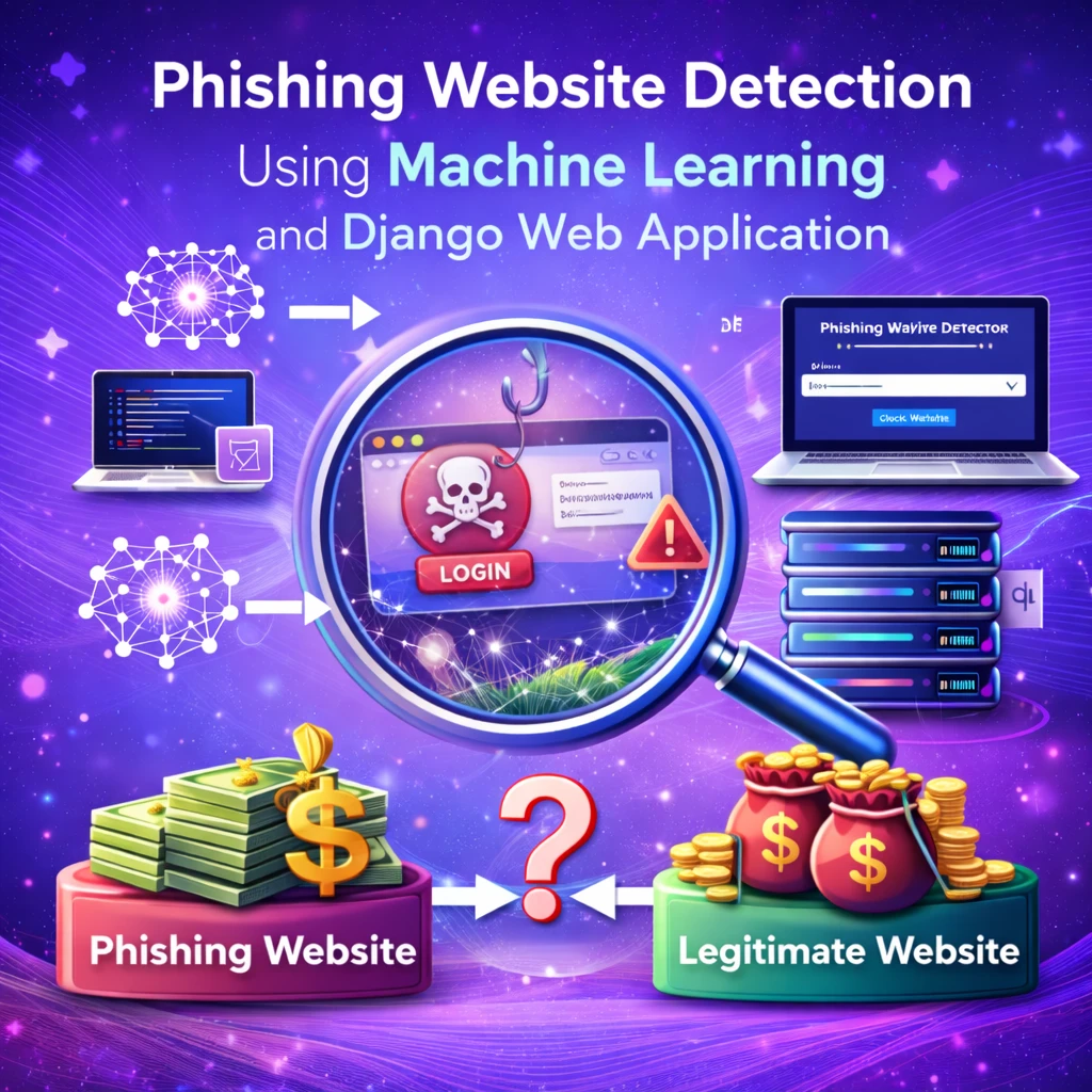 Data preprocessing and feature selection techniques are applied to identify the most relevant features that help distinguish phishing websites from legitimate ones. A Random Forest Classifier machine learning model is trained using the processed dataset to classify whether a website is phishing or legitimate.
