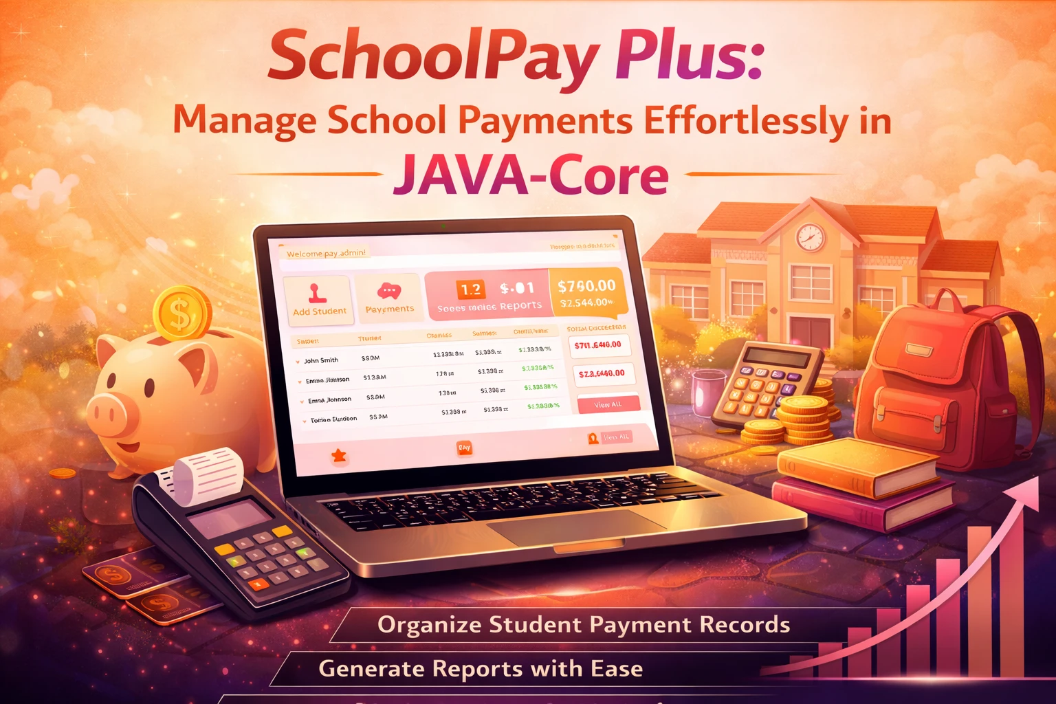 SchoolPay Plus is a Java-Core based application designed to simplify and automate the fee payment process in schools and educational institutions. In many schools, fee collection is still handled manually through paper receipts, registers, and physical verification, which often leads to delays, human errors, data duplication, and difficulties in tracking student payment history. This project aims to provide a digital solution that improves transparency, speed, and accuracy in school payment management.