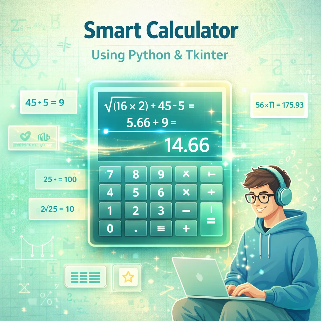 This project focuses on developing a Smart Calculator using Python and the Tkinter library. Tkinter is a built-in Python library used to create graphical user interfaces (GUI). The calculator is designed not only to perform basic arithmetic operations but also to understand text-based commands such as add, subtract, multiply, and divide.