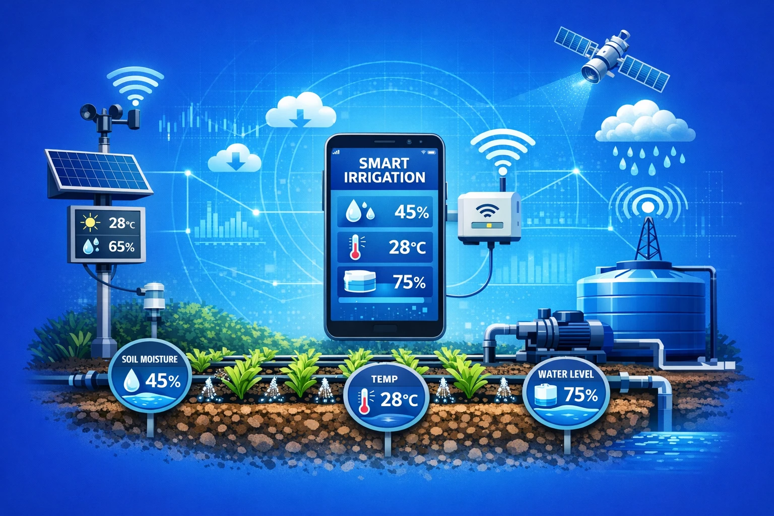 Smart Irrigation System is an IoT-based agricultural solution designed to optimize water usage by automatically monitoring soil moisture, weather conditions, and crop requirements. The system uses sensors and microcontrollers to analyze real-time data and control water supply efficiently. It helps farmers reduce water wastage, improve crop yield, and lower operational costs by enabling automated and data-driven irrigation management.