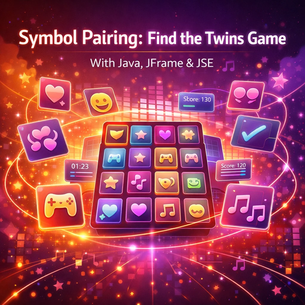 Overall, the Symbol Pairing: Find the Twins Game provides an entertaining and educational experience that combines memory-based gameplay with Java programming concepts. The project serves as an excellent example for beginners learning how to build graphical games and interactive applications using Java.