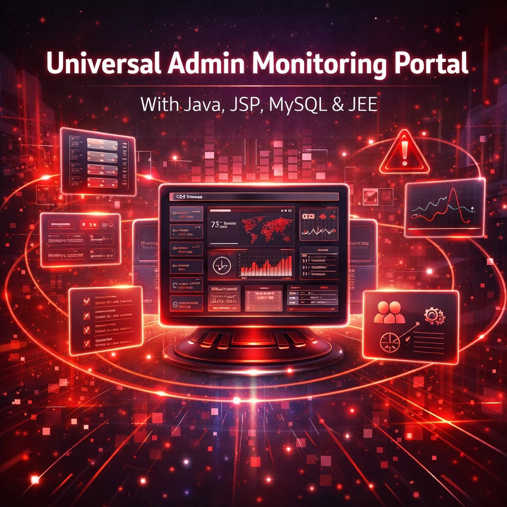 The Universal Admin Monitoring Portal is a web-based application developed using Java, JSP (Java Server Pages), MySQL, and Java Enterprise Edition (JEE) that allows administrators to monitor and manage system activities through a centralized dashboard. The main objective of this project is to provide an efficient platform for administrators to oversee user activities, system data, and operational processes within an organization.
